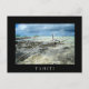 Postal de un árbol muerto sobre un arrecife de coral negro esperando la decadencia en medio de la perfecta laguna azul de un atolón del Pacífico en la isla de la Polinesia Francesa en el archipiélago de Tahití con un borde negro y el texto: "Tahití".