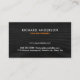 Perfil personal moderno y minimalista o tarjetas profesionales con textura de grano de madera negra impresa. Añada un nombre, eslogan, título o nombre de empresa al frente. Texto blanco con acento naranja en la parte posterior (puede cambiarse a cualquier color). Campos de plantilla para nombre, título o nombre de empresa e información de contacto. Un diseño elegante ideal para un abogado, abogado, contable, consultor y más.