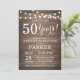 Rústica Invitación a los 50 Años fondo de madera con String Lights. 13.º 15.º 16.º 18.º 20.21.30.40.50.60.70.80.90.100, cualquier edad. Cumpleaños de adultos. Fiesta de cumpleaños de hombre o mujer. Para una mayor personalización, haga clic en el botón "Personalizar" y utilice nuestra herramienta de diseño para modificar esta plantilla.