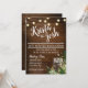 Celebra tu boda con esta rústica invitación a la boda, con suculentas flores y luces colgantes. Utiliza la herramienta de personalización sencilla y completa tu información.