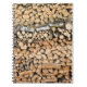 Cuaderno con los registros de madera tajados apilados en una pila de manera operacional en una chimenea.