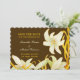 Elegantes lirios de madonna (en tonos marrones y naranjas) diseñados a medida Boda Guardar las invitaciones de fecha. El mismo diseño en verde también está disponible en mi tienda. Es muy fácil editar las palabras, tipos de letra, colores y tamaños de todo el texto al personalizar la tarjeta de invitación. Los elementos bodas coincidentes también están disponibles en mi tienda.