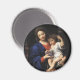 La Madonna usa túnicas azules y rojas y tiene al niño Cristo en su regazo. La Virgen sostiene las uvas en su mano. Una preciosa Madonna y un imán infantil.