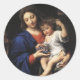 La Madonna usa túnicas azules y rojas y tiene al niño Cristo en su regazo. La Virgen sostiene las uvas en su mano. Una preciosa hoja de Madonna y pegatinas infantiles.
