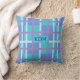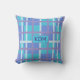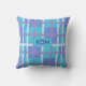 almohada moderna rayada/madras con una bonita paleta azul, violeta y blanca.