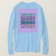 Puedes agregar los nombres de tus hijos a esta camiseta madre. Esta es una camiseta de manga larga de color azul claro básico. La camiseta es una camiseta madre. Las palabras que mamá está en el texto cuatro veces verticalmente en la parte delantera y trasera de la camiseta. Esta es una camiseta con los nombres de los niños de una mujer. Puede escribir el nombre de cada niño en una de las mamás de la camisa. Puedes darle esta camiseta a alguien para el Día de la Madre, un feriado en mayo.