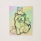 rompecabezas con madre y 4 gatitos con fondo de color arcoiris