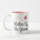 Este bonito en la madre rosada de la taza del novio es el regalo perfecto para que cualquier novia dé a su mamá al uso en su día de boda o en la cena del ensayo. Presente agradable para la ducha nupcial también.