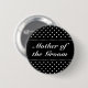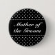 La madre del botón del respaldo del novio para bodas, recepciones de boda y ensayos. Diseño elegante de patrones de puntos de polka en blanco y negro. Texto elegante personalizable y color de fondo elegante.