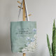 Esta elegante bolsa de mano para boda presenta un fondo verde salvia refinado adornado con suaves flores botánicas y tipografía elegante, creando un aspecto clásico y moderno. Diseñada para bodas sofisticadas, complementa perfectamente los temas de boda botánicos, de jardín y de lujo.