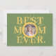 Sol amarillo con brillantes rayos de sol Día de la Madre personalizado 3 fotos personalizadas Mejor carta de saludo verde de mamá de siempre con tipografía falsa en negrita de oro y caligrafía estilo caligrafía de escritura texto y firma. ¡Fácil de personalizar en ambos lados!