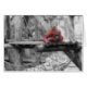 Estar en el zoo. Fotografía a color de una mujer de Orangutan con su bebé en la espalda, desaturada a blanco y negro. Los Orangutans se conservaron en su original color marrón rojizo, que contrasta con el fondo blanco y negro.