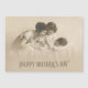 Retrato fotográfico de la sepia victoriana sensible que muestra a una madre amorosa tenazmente mirando a un niño pequeño durmiendo mientras un hermano mayor mira. Incluye saludo "Feliz Día de la Madre" en letra vintage personalizado (que puede ser reemplazado por una fuente disponible en la herramienta de diseño).
