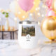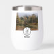 Madre anidando en un huevo monograma. Encima del huevo personalizado hay una foto de bosque niebla, la imagen se cambia fácilmente a tu propia selfie. Debajo del pollo hay un lugar para tu propia etiqueta de nombre. Un regalo de idea para cualquier madre sobreprotectora.