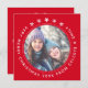 Diseño rojo lindo y festivo con estrellas y texto navideño Feliz. Foto y texto personalizados.