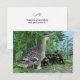 Una madre pata de ánade real tiene a sus pequeños patitos reunidos frente a ella en la orilla de un arroyo. En la parte trasera, un breve mensaje dice: "Gracias por cuidarnos tan bien". Este texto es totalmente personalizable y se puede eliminar si prefiere escribir a mano su mensaje de agradecimiento.