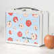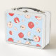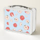 La caja de almuerzo de los profesores metalizado retro con la parte delantera y trasera hecha en un lindo punto de polka azul y patrón de manzana. Personaliza el nombre, en el frente, para tu profesor favorito.