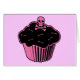 Esta magdalena rosada linda tiene un cráneo en ella en vez de una cereza.