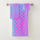 Este diseño colorido presenta formas geométricas abstractas con un efecto gradiente en los tonos de magenta, azul celeste y marina.