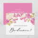 ¿Serás mi novia? Pídele a la familia y amigos que sean parte de su fiesta nupcial con esta tarjeta femenina de proposición de dama de honor floral. Cuenta con ilustraciones acuáticos de hortensias de magenta rosa, flores blancas y vegetación. Esta tarjeta de proposición de hortensias rosa es perfecta para bodas de primavera. Personalice agregando nombres y mensajes.