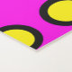 Diseño de patrones de círculos amarillos, con bordes negros sobre un fondo magenta sólido.
