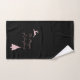 Diseño moderno en negro y rosa decorado con letra de guión, reno y árbol.