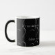 La taza Morphing con los corazones en fondo negro y "ella no es ninguna sorpresa…. Te amo" mensaje que aparece cuando líquido caliente en taza.