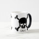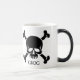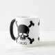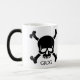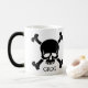 La taza del grog del pirata discreto es negra hasta que usted añada una bebida caliente, después el cráneo del grog y el diseño cruzado de los huesos aparece.