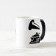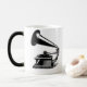 Featues de esta taza un gramófono del vintage en blanco y negro. La taza ideal para los amantes de buenos sonidos y de todo el vintage de las cosas…