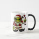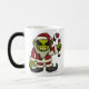 Un duende de mirada malvado del navidad que sostiene un bastón de caramelo y que lleva un juego de Santa.