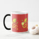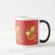 Una taza morphing para sorprender al beneficiario, con un dragón chino de oro en un fondo rico, de color rojo oscuro, llevando una linterna, de un ilustracion pintado a mano de Judy Adamson. Otros productos con este diseño están disponibles de mi tienda.