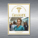 Esta tarjeta magnética de invitación de enfermería personalizada de moda dorada o de graduación de la escuela de medicina presenta una tipografía moderna elegante para una clase de graduado 2025 por encima de su foto de enfermera o médico. Personalizar con su año de graduación bajo el personalizado caduceus y fotografía de graduado en estos imanes.
