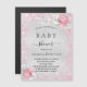 Una moderna y elegante ducha de bebé, celebrando a una niña. Fondo de aspecto metálico de color plateado falso decorado con purpurina falso rosa, chispas y flores. Personalice y agregue un nombre y detalles del fiesta. Letras de color negro. Puede utilizarse como recordatorio de Guardar la fecha para su invitado.