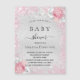 Una moderna y elegante ducha de bebé, celebrando a una niña. Fondo de aspecto metálico de color plateado falso decorado con purpurina falso rosa, chispas y flores. Personalice y agregue un nombre y detalles del fiesta. Letras de color negro. Puede utilizarse como recordatorio de Guardar la fecha para sus invitados.