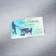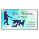 Tarjeta de visita magnética con temática de caminador de perro hecha con fondo de color azul y verde, con gráficos de silueta azul oscuro de un caminante de perro con tres perros. Todo el texto es completamente personalizable. Personalice esta tarjeta de diversión para su negocio.