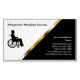 Imanes de tarjetas de visita médica diseñados para la industria de servicios para personas con movilidad reducida en oro, negro y blanco de clase. Un diseño moderno adecuado para servicios de transporte en silla de ruedas, salud en el hogar o temas de discapacidad.