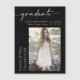 ¡Sí! Finalmente se graduó de la escuela secundaria, universitaria o de un programa de graduación, ¡así que ahora es momento de informar a la familia y amigos que lo hizo! Celebra uno de los momentos más preciados de su vida y envía esta tarjeta magnética de invitación de graduación. Este imán presenta un hermoso guión de caligrafía de la redacción de "graduado" en un fondo negro y la foto del graduado. Simplemente personalizar y reemplaza el texto y la foto en el cuadro de personalización. Nota: El elegante guión caligráfico de "graduado" y otros elementos y obras de arte gráfico no se pueden editar, eliminar ni mover. Están arreglados.
