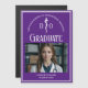 Esta tarjeta magnética de invitación de graduación de la Facultad de Medicina Osteopática personalizado púrpura para un DO o un médico de osteopatía presenta un símbolo médico caduceus osteopático y su foto universitaria para la clase 2025. Personalizar con tu año de graduación en blanco para un imán de fotografía de graduados universitarios personalizado.