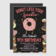 ¡No pierdas las rociadas, pero es mi noveno cumpleaños! Una invitación única para el cumpleaños personalizada con una variedad de deliciosos donuts y un ilustracion Kawaii Donut. Personalizar con todos los detalles de tu evento de cumpleaños. El dorso presenta un coloquio de rociadores coloridos con un fondo negro. ¡Genial para los chicas que cumplen nueve años!