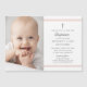 Chicas de la elegancia moderna La invitación al bautismo de fotos es una invitación moderna y limpia que incluye rayas rosas suaves y una cruz. El tipo de personalizable gris le permite cambiar toda la información de la tarjeta a su gusto. La parte trasera es magnética. Perfecto para el bautismo de una niña.