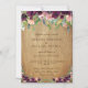 Invitación a una boda floral de madera rústica. El frente presenta hermosas flores de acuarela pintadas a mano y ajustadas digitalmente y hojas en granos de borgoña, marrón, marsala, coral, rosa, verde y gris azul en madera rústica con bello texto de color chocolate. Postal back puede ser personalizada y si desea una vuelta en blanco, todos los elementos pueden ser borrados por usted con las herramientas proporcionadas en el menú de personalización de Zazzle. Por favor visite nuestra tienda, Austen & Grace, para ver otras, y por favor contáctenos si necesita algún producto o asistencia adicional para encontrar coincidencias contact@austenandgrace.com