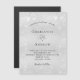 Una invitación de boda magnética moderna, elegante y minimalista. Fondo metálico plateado falso decorado con polvo de purpurina falso. Personaliza y agrega tus nombres y detalles de la boda. Letras de color negro.