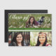 Una plantilla de fotos que se puede personalizar para que se ajuste a un trío de fotos del graduado o más si se desea. Esta tarjeta magnética es fácil de personalizar con tu propio texto, estilo de texto y colores. La barra verde y blanca se puede eliminar si se desea. NightOwlsMenagerie, 2017. Muestras de foto cortesía de C. Miller de Elysium Photography.