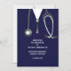 Invitación creativa de graduación de médica para graduados de la facultad de medicina con matorrales y arte estetoscopio.