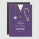 Invitación creativa de graduación de médica para graduados de la facultad de medicina con matorrales y arte estetoscopio.