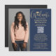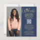 Comparte la alegría de una escuela secundaria o universitaria con elegantes invitaciones magnéticas cuadradas. Con una foto y un código QR personalizado, estas tarjetas anuncian el logro del graduado y proporcionan un enlace a una ubicación en línea de su elección, como un sitio web, una página de medios sociales, invitación digital, invitación al partido o un álbum de fotos. Dependiendo de cómo esté configurado, el enlace podría proporcionar un lugar para que amigos y familiares publiquen una nota en línea, le den un regalo de aplicación de pago o vean más información, como detalles del fiesta y rsvp. El moderno diseño azul marino y dorado incluye una gorra de mesa de mortero, caligrafía de escritura a la moda, tipografía clásica elegante y una foto de su elección, como una foto de la tercera categoría o una imagen de la ceremonia de graduación. Tenga en cuenta que el oro es color impreso, no Relieve metalizado metálico. La imagen y la redacción de esta plantilla son fáciles de personalizar y los colores son fáciles de cambiar con la herramienta de diseño Zazzle. Esta tarjeta de graduación es una manera única de anunciar una celebración especial del día. ¡Felicitaciones al graduado!