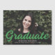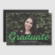 Imán de invitación de graduación simple y elegante que presenta la foto horizontal del graduado con "Graduado" en un audaz guión verde. Personalice la invitación de graduación fotográfica añadiendo el nombre del graduado, el nombre de la escuela y el año de graduación.