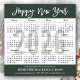Calendario 2026 Simple Elegante guión escrito a mano 'Feliz Año Nuevo' Festividad en tarjeta magnética de negocios negra. Todos los textos están preorganizados para que puedas personalizarlos fácil y rápidamente con tus propios detalles.