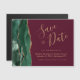 Esta elegante tarjeta magnética para guardar la fecha presenta un borde de agate de color verde esmeralda recortado con un falso purpurina de oro. El texto del personalizable combina el guión de escritura a mano de color dorado, las fuentes de copperplate y cursiva en un fondo de color burdeos.