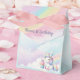Envía a tus invitados a casa con alegría usando estas mágicas cajas de favores de cumpleaños de arco iris de unicornio. Decoradas en tonos rosa pastel, violeta y amarillo con un original unicornio, estas cajas son perfectas para rellenarse con dulces, juguetes o pequeños regalos. Un detalle dulce y práctico para completar la celebración del cumpleaños de unicornio.